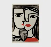 Un doppio ritratto magistrale nello spirito del cubismo: quest'opera unisce due volti in un'affascinante unità - potenti contorni neri su uno sfondo color crema, accentuati da sensuali labbra rosse. La riduzione geometrica ricorda Picasso, mentre le linee richiamano l'arte africana. La texture a tratteggio conferisce ulteriore profondità alla composizione. Un'opera sull'identità, la prospettiva e la complessità del sé: minimalista nella forma, massima nell'effetto psicologico. Semplice, ma straordinariamente impressionante!
