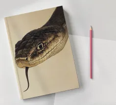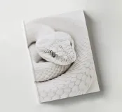 L'elegante ritratto di un serpente bianco in stile boho minimalista mostra l'affascinante bellezza dei rettili in bianco e nero. Ideale per gli amanti dell'arte animale!