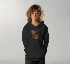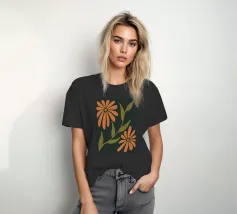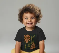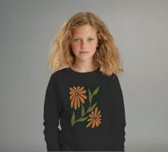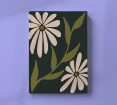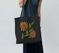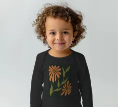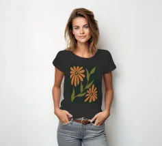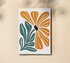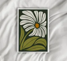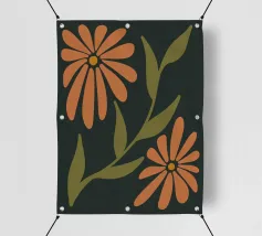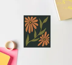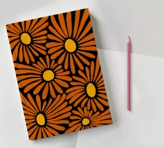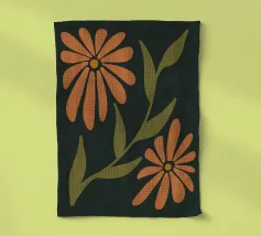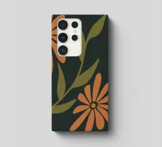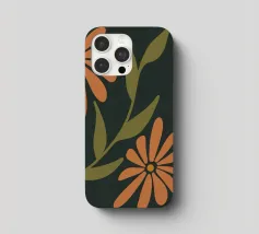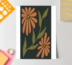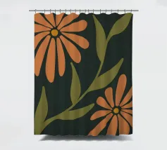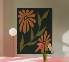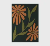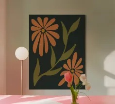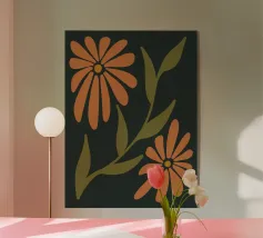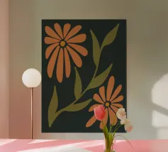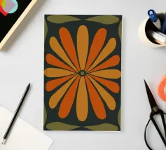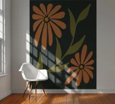 Fiori retrò del Mid Century, arancione, marrone, kaki, verde scuro, colori autunnali boho anni '70-'60.