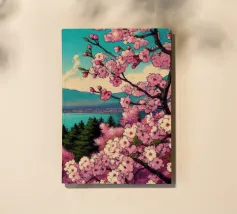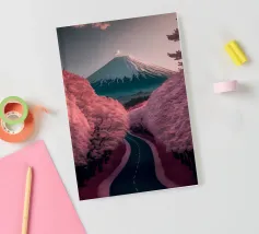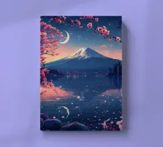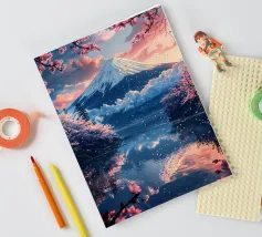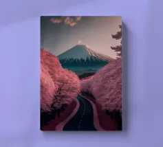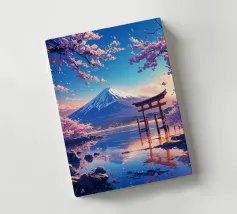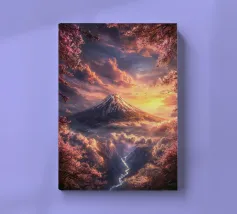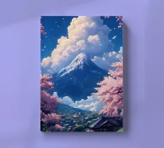 Una vista mozzafiato del maestoso Monte Fuji che si staglia nel cielo limpido di primavera. In primo piano, delicati fiori di ciliegio (sakura) danzano nel vento, conferendo alla scena una poetica leggerezza. La combinazione tra la forza della natura e la bellezza dei fiori simboleggia la transitorietà, l'armonia e il profondo legame tra la cultura giapponese e la natura. Questa immagine cattura perfettamente la magia della stagione della fioritura dei ciliegi, ideale per opere d'arte da parete, calendari o diari di viaggio. Suggerimento: perfetto per tutti coloro che sognano di viaggiare o che vogliono portare un pezzo di tranquillità e di estetica giapponese nella loro casa.
