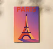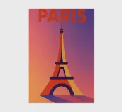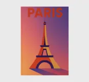 Un poster minimalista e vibrante che cattura tutta la magia di Parigi nell'ora d'oro. La Torre Eiffel si erge elegantemente su una gradazione di viola, rosa e arancione, evocando la poesia di un crepuscolo parigino. Perfetta per un arredamento urbano e chic, questa illustrazione modernizza l'icona francese con stile e morbidezza.