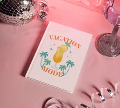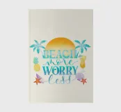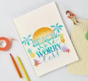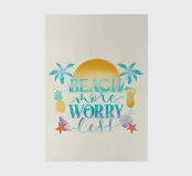 Siete pronti per una vacanza e avete voglia di sole, mare e spiaggia. Allora questo motivo con alba, palme, cocktail rinfrescanti, ananas fresco e conchiglie è proprio quello che fa per voi. Detto umoristico per l'estate. Concedetevi più spiaggia e preoccupatevi di meno.