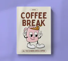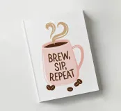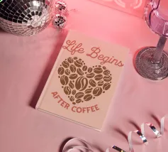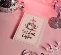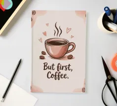 Illustrazione moderna e minimalista di una tazza di caffè rosa con un testo di citazione per tutti gli amanti del caffè