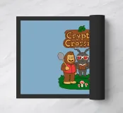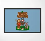 This illustration shows Bigfoot, Mothman, and an Ahool standing together on a grassy patch with mushrooms, all drawn in a soft and playful style. The artwork is a humorous parody that blends famous cryptids with the cozy, charming atmosphere of Animal Crossing, highlighted by the pun “Cryptid Crossing.” Perfect for fans of folklore, cute gaming aesthetics, and anyone who loves clever twists on iconic video game vibes.