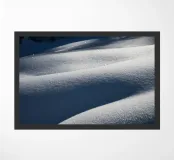 Sanft geformte Schneewellen im Morgenlicht. Diese winterliche Landschaft zeigt glitzernde Schneekristalle, die wie gefrorene Wellen wirken. Ein ruhiges, minimalistisches Wintermotiv, perfekt als Wandkunst für alle, die klare Linien, Naturfotografie und dezente Winterstimmung lieben.