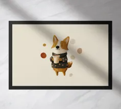An illustration of a humming fox. This design brings a cozy, whimsical touch of winter magic, perfect for adding a touch of charm and warmth to any part of your life.