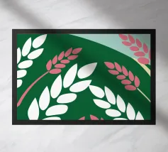 Un'illustrazione che presenta un motivo a foglie con uno stile semplice, utilizzando i colori rosa, bianco e marrone. Questa illustrazione offre un aspetto fresco e moderno.