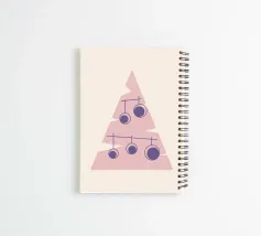 Albero di Natale dipinto in modo minimale con decorazioni semplici e stilizzate, bella illustrazione perfetta per un regalo di Natale o per la vostra decorazione interna natalizia. Natale non convenzionale nei toni del rosa.