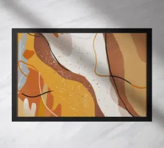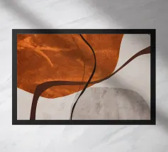 Le macchie strutturate in tonalità calde evocano un deserto mutevole in rilievo astratto.