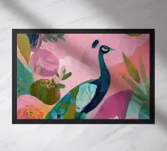 Questo pezzo meticolosamente lavorato mette in mostra una vibrante piuma di pavone in un dettaglio sorprendente, che cattura la bellezza iridescente e i motivi intricati del capolavoro della natura.