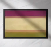 Ispirato allo stile di Mark Rothko, questo dipinto astratto mostra campi di colore delicatamente fusi in viola, verde scuro e beige, che creano un'atmosfera meditativa ed emotiva. Al centro si trova un campo luminoso che conferisce calma e profondità alla composizione. La disposizione minimalista e moderna dei blocchi di colore invita lo spettatore a contemplare l'effetto puro del colore e della forma.