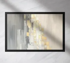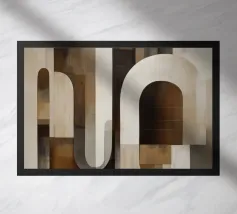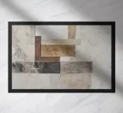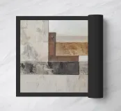 Diese abstrakte Gestaltung verbindet industrielle Elemente mit erdigen Farben und minimalistischen Formen. Überlagerte Texturen aus Papier und Baumaterialien, kombiniert mit Pinselstrichen, schaffen eine faszinierende Tiefe und reflektieren den Boho-Stil in zeitgenössischem Design.