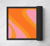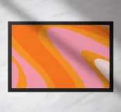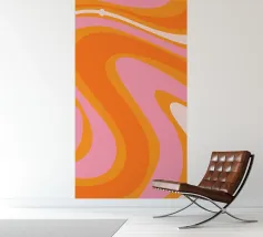 funky abstract art, hot pink aesthetic, mod style print, mid-century inspired design, vibrant swirl graphic, coral and peach tones