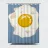 Un'illustrazione minimalista e iperrealistica di un singolo uovo al tegamino, perfetto, con il lato solare verso l'alto, su uno sfondo blu solido. Lo stile è grafico e moderno.