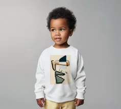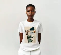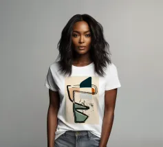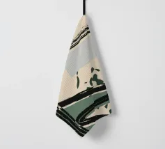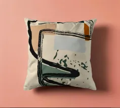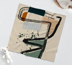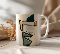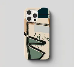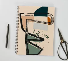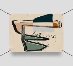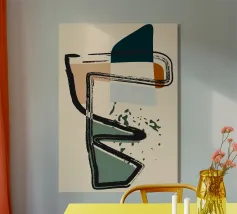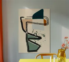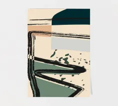 Forme astratte e linee decise si fondono in un equilibrio di colori tenui, creando una composizione dinamica. Le forme organiche si intrecciano, mentre sprazzi di verde aggiungono profondità e movimento.