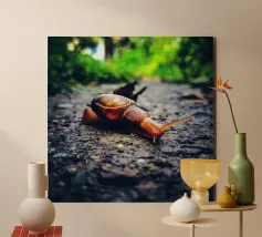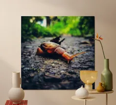 Le lumache sono piccoli molluschi che portano sul dorso una conchiglia a spirale che funge da casa mobile. Le conchiglie sono solitamente marroni, gialle pallide o a strisce e brillano leggermente alla luce. Le lumache hanno un corpo lungo, morbido, grigio-marrone e leggermente viscido che le aiuta a scivolare sul terreno. Hanno antenne lunghe con occhi all'estremità e antenne più corte che usano per percepire l'ambiente. Spesso appaiono dopo la pioggia, strisciando lentamente sulle foglie, sull'erba o sui muri, evocando una sensazione di dolcezza e pazienza.