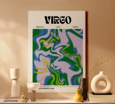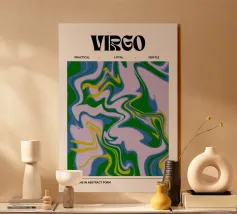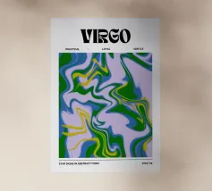 Abbracciate la vostra natura riflessiva con questo accattivante poster digitale dedicato al segno zodiacale della Vergine. Caratterizzato da un ipnotico motivo astratto a vortice nei toni sereni del viola chiaro, del blu, del verde e del giallo, quest'opera d'arte incarna la natura pratica, leale e gentile della Vergine. La parte superiore mette in evidenza questi tratti chiave, mentre la parte inferiore riporta "STAR SIGNS IN ABSTRACT FORM" e "2023/24". Questo pezzo tranquillo ma dinamico è perfetto per gli appassionati di astrologia o per chiunque cerchi una dichiarazione calma e moderna per il proprio spazio. Realizzato con una straordinaria risoluzione di 7000x5000 pixel e 300 dpi, questo d