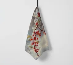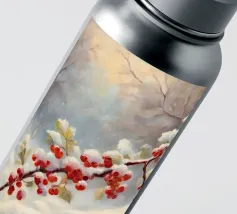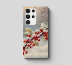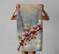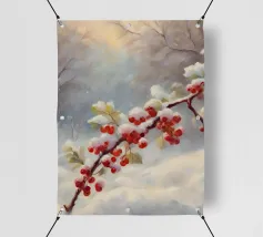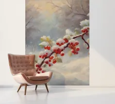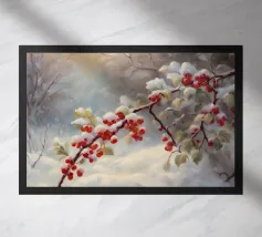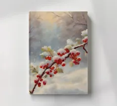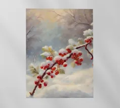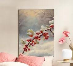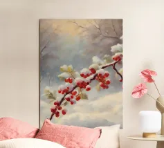 Un suggestivo motivo invernale: un ramo di bacche rosse, ricoperto di neve scintillante, contro un cielo delicato. I colori decisi e la raffinata tecnica pittorica creano una scena elegante e naturale che irradia calma e festa. Ideale per decorazioni natalizie, arte invernale, illustrazioni naturalistiche e murales festivi. Perfetto come quadro natalizio, stampa artistica invernale, poster naturalistico, illustrazione botanica, poster festivo, romantica arte invernale, idea regalo per Natale, arte murale natalizia e accogliente decorazione domestica.