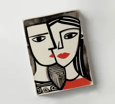 Un doppio ritratto magistrale nello spirito del cubismo: quest'opera unisce due volti in un'affascinante unità - potenti contorni neri su uno sfondo color crema, accentuati da sensuali labbra rosse. La riduzione geometrica ricorda Picasso, mentre le linee richiamano l'arte africana. La texture a tratteggio conferisce ulteriore profondità alla composizione. Un'opera sull'identità, la prospettiva e la complessità del sé: minimalista nella forma, massima nell'effetto psicologico. Semplice, ma straordinariamente impressionante!