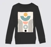 Le forme geometriche sono disposte in una composizione equilibrata con cerchi, archi e semicerchi in tonalità tenui. Il design è caratterizzato da un gioco di linee e forme che creano un senso di simmetria e armonia.