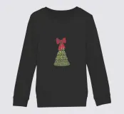 Disegno di un pino verde con neve e un fiocco rosso con citazione di Natale