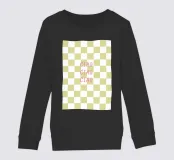 scritta ciao ciao ciao su motivo a quadri color pistacchio.
