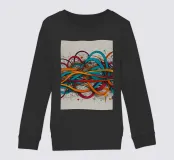 Questo disegno presenta un'intricata disposizione di linee fluide e colori vivaci, che creano un senso di movimento ed energia. Lo sfondo è neutro, per migliorare l'impatto visivo.