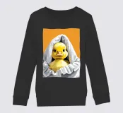 Un simpatico anatroccolo fa capolino da sotto un morbido asciugamano bianco. Le sue soffici piume gialle e i suoi occhi curiosi creano una scena adorabile e affascinante.