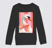 Testa di cigno dipinta a mano a guazzo con un vivace fiocco corallo su sfondo a righe arrossate. Luminosa tavolozza di colori pastello con tratti nitidi e un morbido tocco rétro. Perfetto per la cameretta o per un arredamento preppy.