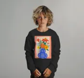 Questo allegro motivo floreale mostra un vaso blu stilizzato pieno di fiori colorati in arancione, rosso, giallo e rosa, incorniciato da una calda tonalità corallo. Il disegno irradia gioia di vivere e armonia ed è perfetto per murales, cuscini, tazze, cover per cellulari e altro ancora. Ideale per chi ama un'estetica fresca e moderna e desidera ravvivare la propria casa con accenti colorati e naturali. Questa composizione floreale senza tempo si adatta a qualsiasi ambiente e a qualsiasi stile di casa.