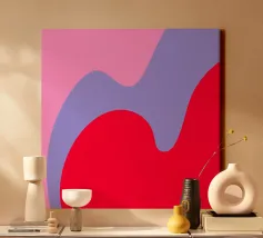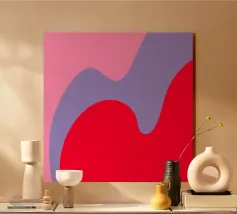Elevate il vostro spazio con un'accattivante opera d'arte moderna caratterizzata da forme astratte in vivaci tonalità rosse, rosa e viola. Aggiungete un tocco di raffinatezza e vivacità al vostro arredamento con questo splendido pezzo. Perfetto per gli appassionati d'arte che cercano un'eleganza contemporanea.