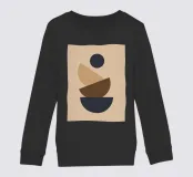 Le forme geometriche sono impilate in una composizione equilibrata. Il disegno è composto da un cerchio e da diversi semicerchi nei toni del nero, del marrone e del marrone scuro.