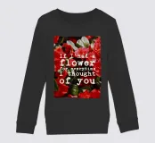 Una poesia visiva di colori ed emozioni: fiori rossi brillanti su uno sfondo verde lussureggiante fanno da sfondo alla scritta bianca "If I had a flower for everytime I thought of you" (Se avessi un fiore per ogni volta che ho pensato a te), una frase che oscilla come un pensiero silenzioso tra nostalgia e affetto. La composizione vive del contrasto tra l'intensità floreale e la chiarezza tipografica. Sembra un momento catturato, personale e universale allo stesso tempo.