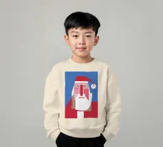 Uno schiaccianoci dall'interpretazione geometrica in un moderno design piatto, creato con forme chiare e un equilibrato spettro di colori rosso, beige e blu pastello. La sua espressione pacata e serena conferisce al classico motivo natalizio un tocco fresco e contemporaneo. La simmetria angolare, i baffi e i dettagli minimalisti rendono l'illustrazione una dichiarazione di stile e modernità per il periodo natalizio.