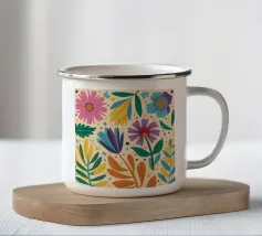 Una bella macchia di fiori selvatici stilizzati e stravaganti è illustrata in un affascinante stile ispirato all'arte popolare, con un delizioso mix di colori e forme che irradiano gioia e bellezza naturale.