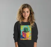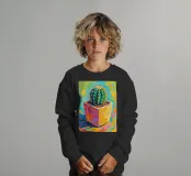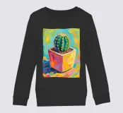 Piccolo cactus in vaso a forma di cubo con pittura fauvismo stile arte