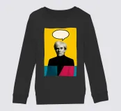 Andy Warhol, il re della pop art, in un omaggio con un colpo di scena: una bolla vocale vuota fluttua sopra la sua testa - su uno sfondo giallo brillante, combinato con allusioni colorate CMYK in ciano, magenta e nero. Tra ritratto, pop e post-ironia. Fa parte della serie Geometric Masters, che decostruisce figure artistiche iconiche utilizzando forme e colori geometrici. Forte, intelligente, moderno.