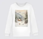 Questa suggestiva immagine invernale mostra una baita innevata circondata da maestosi abeti e cime impervie. Davanti alla baita, sciatori e bambini scivolano felici sulla neve, conferendo alla scena un'atmosfera vivace ma tranquilla. I colori tenui del cielo in contrasto con il bianco del paesaggio creano un motivo invernale armonioso e romantico, ideale per chi ama la magia della montagna. Perfetto per murales, poster, tazze, cover per cellulari, cuscini, tende da doccia e T-shirt.