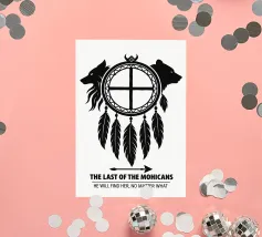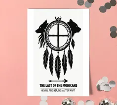 Stampa "L'ultimo dei Mohicani", Poster cinematografico alternativo, Arte murale minimale, Bianco e nero, Ruota di Medicina, Occhio di Falco, Cinema, Regalo per gli appassionati di cinema