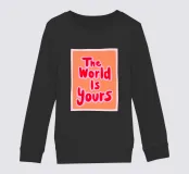 "Il mondo è tuo!" - Un avventuroso motivo estivo nelle vivaci tonalità del rosa, del rosso e dell'arancione. Questo disegno tipografico ispira viaggi ed esplorazioni, mentre il carattere audace incarna libertà e possibilità.