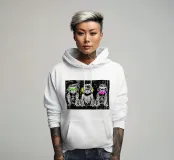 Questo trittico di street art provocatorio cita il famoso motivo delle "Tre Scimmie" con un tocco sovversivo. L'estetica dello stencil di Banksy incontra la ribellione punk al neon: la saggezza classica diventa critica mediatica contemporanea. Le barre fluorescenti simboleggiano la censura digitale in una società sotto sorveglianza. Il dramma monocromatico con accenti sgargianti crea un'atmosfera da galleria urbana. Una dichiarazione intelligente per tutti coloro che vedono l'arte come commento sociale. La ribellione incontra la filosofia. Mostrate il vostro interesse per i problemi sociali con quest'opera.