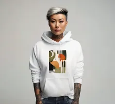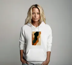 Forme astratte in tonalità terrose creano una composizione armoniosa con forme fluide e contrasti decisi. Curve organiche e macchie di ocra, marrone e oliva costituiscono il motivo centrale.