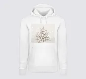 Un'illustrazione semplice e pacifica di un albero invernale spoglio circondato dalla neve che cade dolcemente. Le forme pulite e i toni tenui riflettono il classico minimalismo scandinavo, portando un senso di calma e tranquillità nel vostro spazio.