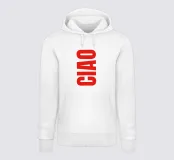 ciao text design, augurio grafico italiano, tipografia rossa in grassetto, lettering moderno e minimalista, parola italiana elegante, testo grafico d'arte