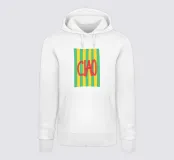 Un simpatico poster tipografico dal sapore italiano: la scritta "CIAO!" dipinta a mano in rosso vivace contrasta con lo sfondo a righe in giallo e turchese. Il mix di pennellate libere e colori retrò rende il disegno un perfetto richiamo visivo per cucine, corridoi o studi creativi. Un saluto allegro - forte, colorato e affascinante, mediterraneo.