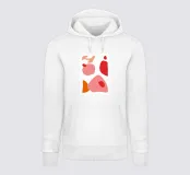 Una composizione astratta minimalista e giocosa di forme semplici e ritagliate in una tavolozza di rosa, rosso e crema. L'opera d'arte è leggera, allegra e ha un'atmosfera moderna e spontanea.