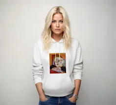 Immergetevi nella complessa bellezza di questo poster digitale, un vibrante omaggio ai capolavori cubisti di Picasso. L'opera d'arte ritrae una donna seduta, ornata da un caratteristico cappello a righe, resa con tratti frammentati e prospettive multiple. La sua pelle dai toni blu contrasta con i gialli, i rossi e i viola caldi dei suoi abiti a fantasia e dello sfondo, creando un arazzo visivamente ricco. Questo poster digitale di qualità superiore, che vanta 7000x5000 pixel a 300 dpi, cattura in modo impeccabile i dettagli intricati e lo stile innovativo, rendendolo uno straordinario pezzo forte per qualsiasi collezione di arte moderna.