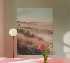 Questo motivo cattura la bellezza idilliaca di un paesaggio di dune assolate che si estende lungo un'ampia spiaggia sabbiosa. I colori caldi dell'erba e della spiaggia che si incurva dolcemente creano un'atmosfera rilassante che trasmette la sensazione di un rifugio tranquillo. Ideale come murale, cover per cellulare, cuscino o tazza per aggiungere un tocco fresco e naturale alla stanza. Perfetto per gli amanti dei motivi da spiaggia, del design scandinavo e dei momenti di pace nella natura.