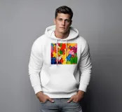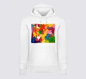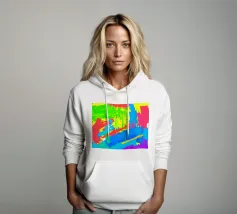 Colori vivaci si fondono in forme dinamiche, creando una composizione gioiosa ed energica. L'assortimento di tonalità offre un'esperienza visiva sorprendente e piena di movimento.