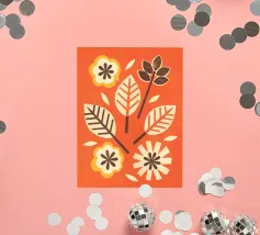 Fiori e foglie Retro Pop: La bellezza di fiori e foglie in un moderno stile retrò! Il design Retro Pop Flowers & Leaves conferisce un'atmosfera vintage allegra ed elegante.